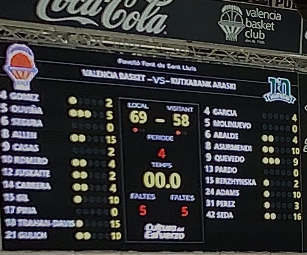 Valencia Basket 69 : (22+9+20+18) Cristina Ouviña (5); Queralt Casas (2); Rebecca Allen (15); Laura Gil (10); Marie Gülich (10);– Quinteto inicial – Anna Gómez (2); Raquel Carrera (4); Celeste Trahan-Davis (15); Laura Juskaite (2); Leticia Romero (4).