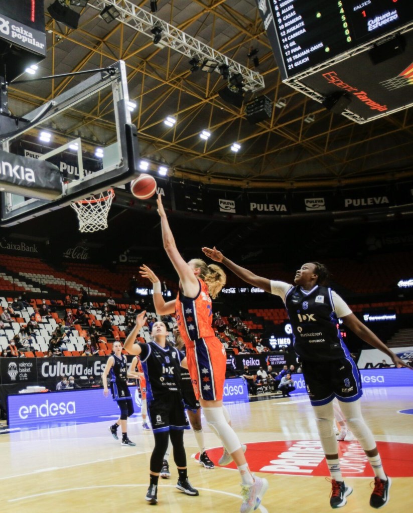 La última jornada de la Liga regular, de la LFEndesa, llegaría; matemáticamente, con diferentes posibilidades, para acceder al último puesto de los PO, así; el duelo por PO Valencia Basket, IDK Euskotren; este duelo, nos traería al recuerdo; en el mismo escenario, y apenas tres semanas atrás, el mismo duelo en cuartos de final de La Copa; en aquella ocasión, comenzaría dominando IDK; pero tras dar la vuelta Valencia Basket, IDK se volvería a enganchar al encuentro, hasta que finalmente, el conjunto taronja lograría con holgura, pero con mucho esfuerzo, el pase a semifinales. Crónica del duelo Copero; https://www.grada3.com/2021/03/06/valencia-basket-idk-euskotren-4os-de-copa-de-la-reina/