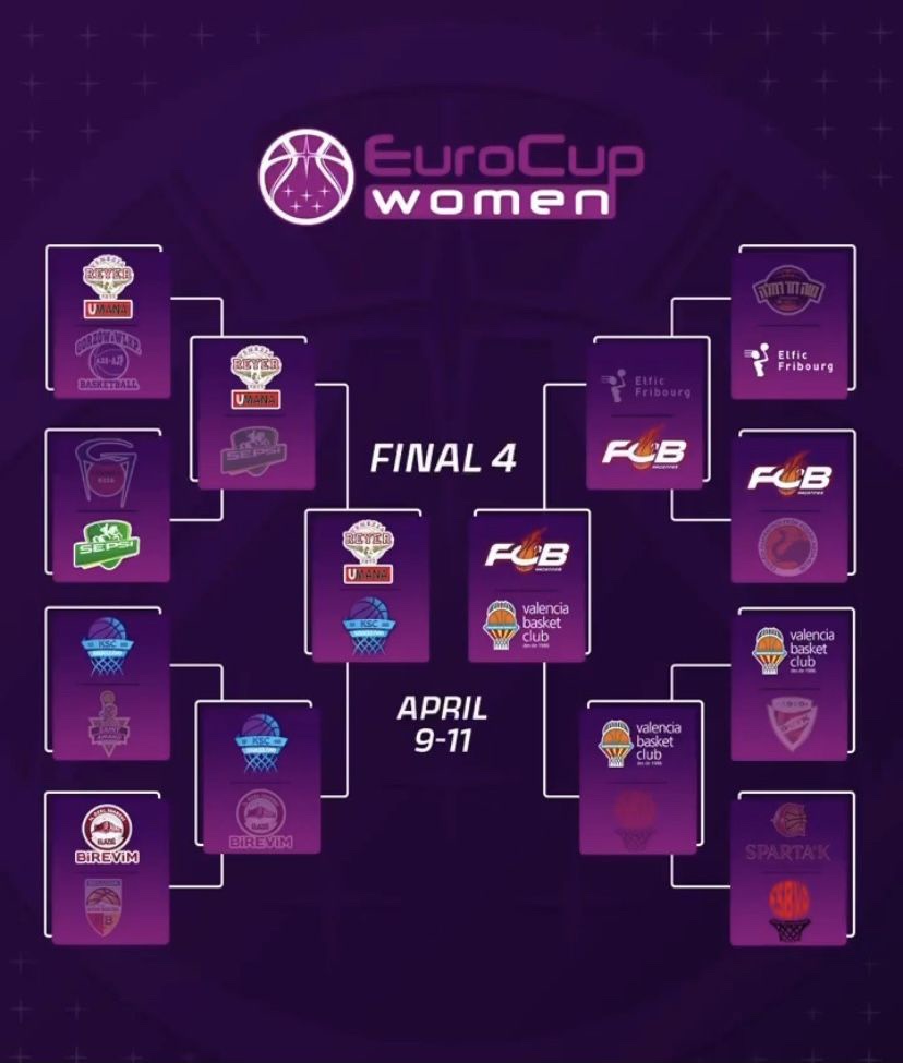 La Final Four de EuroCupW, tras anunciar previamente, su sede; ya da a conocer los horarios de las semifinales. La Final Four, que contaría, con Valencia Basket, como único equipo español, que habría logrado clasificarse, entre los cuatro primeros, de la competición; por primera vez en su historia, se mediría, en semifinales; ante el conjunto francés Flammes Carolo.
