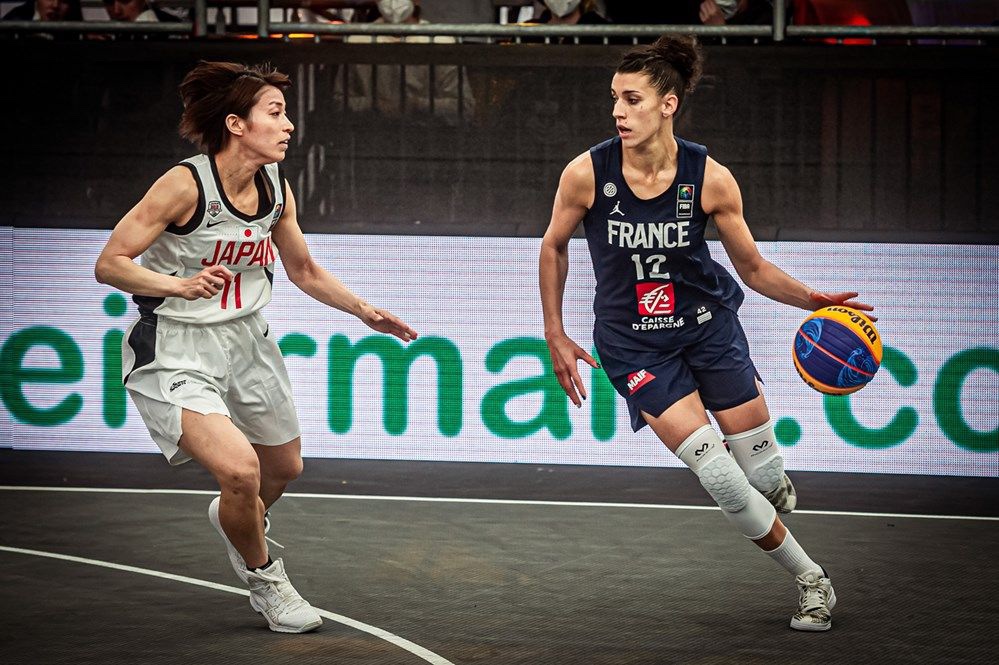 La selección Japonesa, con su juego veloz, y presión defensiva, le costaría parar, a una decisiva selección francesa, que «tirando de galones», dejaría ver; en los primeros compases del encuentro, porque Francia sería el primer equipo en el ranking FIBA, y Laetitia Guapo,la jugadora número uno, en el mismo ranking mundial; pese a ello, Japón, gracias a su presión defensiva, produciría errores en el conjunto galo, llegando, a no perder la cara al partido, poniendo en apuros a Francia, que poco faltaría, para que tuviese que disputar su segundo encuentro con prórroga del día; agotarían los 10 minutos, en los que Japón, también habría cometido fallos poco habituales en este equipo; obteniendo Francia, el primero de los billetes a Tokio, disponibles en Graz, con el marcador (14-15).