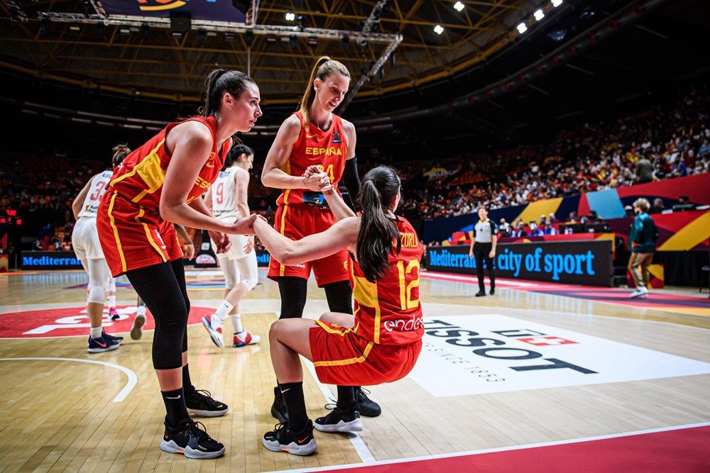 España 64 : Cristina Ouviña (14); Laia Palau (-); Silvia Domínguez (5); Leo Rodríguez (-); Maite Cazorla (11); Raquel Carrera (9); Queralt Casas (2); María Conde (5); Laura Gil (6); Laura Quevedo (-); Astou Ndour (12); Paula Ginzo ().