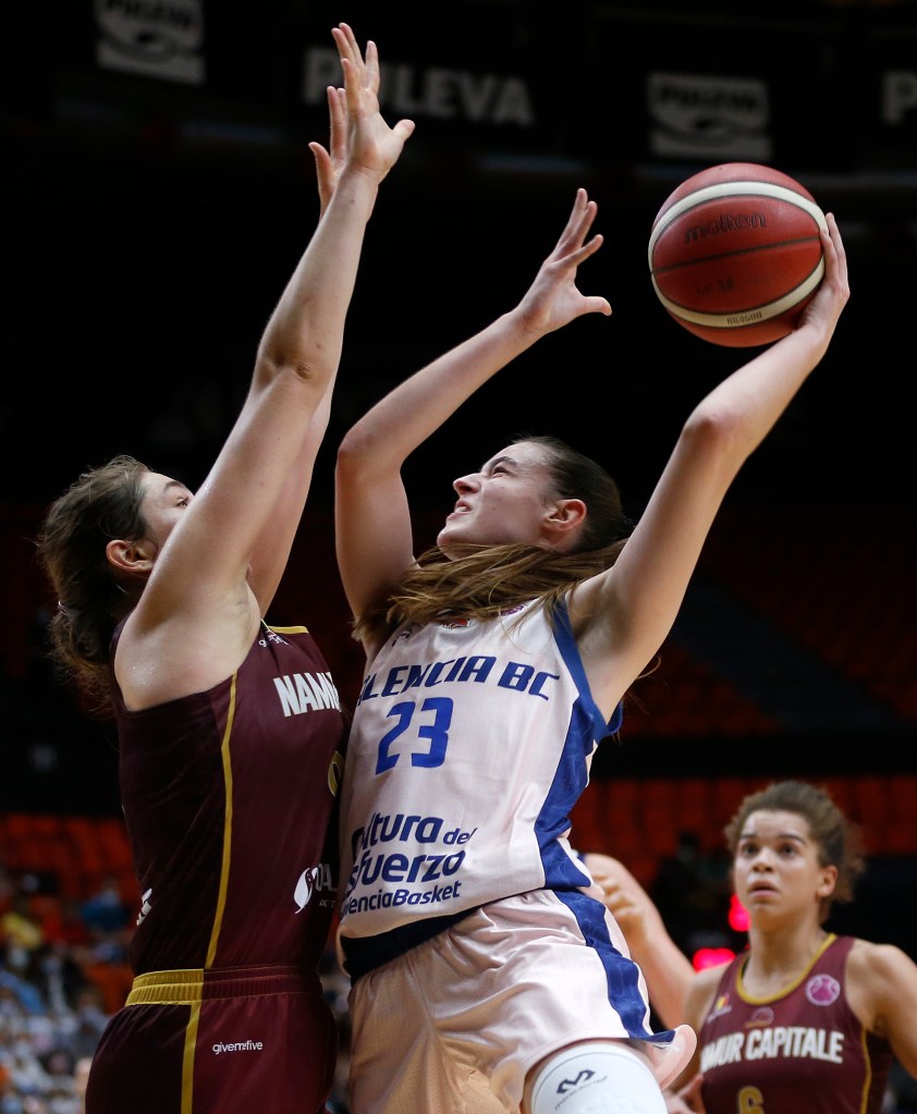 Valencia, seguiría provocando pérdidas, con una defensa, que le costaría burlar al conjunto visitante, y seguiría sumando, con jugadas brillantes, haciendo rápidas triangulaciones, y moviendo el balón con mucho ritmo; Ouviña, pondría el +20 en el marcador desde 6’75, bajo la bocina de posesión, que obligaría a un nuevo TM del banquillo visitante, tras un parcial de período de (17/10); en esta ocasión, la intensidad en defensa, haría, que fuese Valencia, quien llevaría 4 FP a más de 2 minutos, mientras Basket Namur Capitale, llevaría 3; cometiendo, ambos conjuntos, en el último minuto, la 5ª FP, Valencia en ataque, mientras que Namur, llevaría a TL a Leticia, desde donde sumaría los dos últimos puntos, para finalizar (49-20)