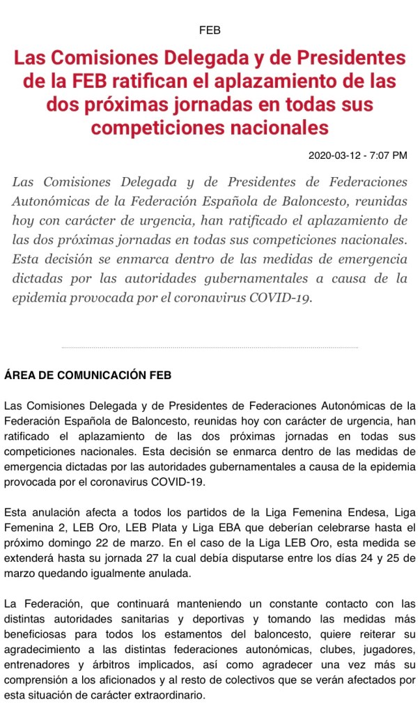 Semana de comunicados y noticias; comunicados Feb sobre la inauguración del “Hall of the Fame”, así como de FIBA y Feb, sedes para los preolímpicos y fechas, componentes de los grupos en los que está España para la pre clasificación tanto de la absoluta, como de la selección 3×3; reconocimientos a las jugadoras de Valencia Basket, Meiya Tirera y Maria Pina, desvinculación de la pívot llegada esta temporada a Perfumerías Avenida; y parrilla completa de difusión de las jornadas de LFEndesa, hasta la Jornada 18.