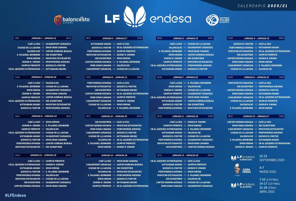 Comenzaría la J-2 de la LFEndesa, con 4 partidos, previstos para el sábado 26/09; uno de ellos, Spar Gran Canaria ante Valencia Basket, el conjunto local; debutaría, tras ascender, ante la renuncia, a su plaza, de Snatt’s Femení Sant Adrià; en condición de local, tras una primera jornada, en la que nos deleitarían, en un intenso derbi Canario, ante Ciudad de la Laguna, perdiendo a domicilio; por 1 punto y tras dos prórrogas con un resultado de 103-102.