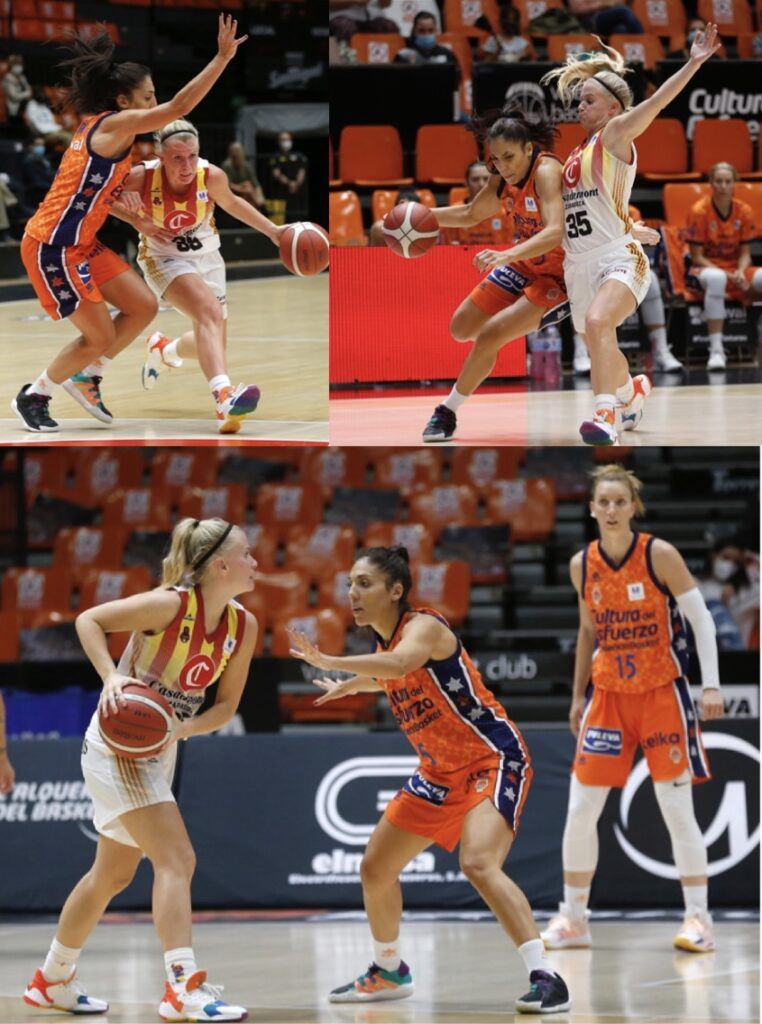 TM a 2’25; con el electrónico, (36-24); y con Gülich; mostrando, su gran potencial; que no parecería, haber llegado esta semana a España; gran parcial, para ella, Allen, Celeste, y Juskaite, a nivel ofensivo, y defensivo; no serían; las únicas que aportarían, si bien, Valencia Basket, estaría mostrando un juego coral de alto nivel; no sería peor el de Zaragoza, aunque viendo el resultado, no haría juicio, a lo trabajado en pista; si bien, no habría que olvidar; que sería su primer partido de competición, mientras que; Valencia, llevaría las dos jornadas previas, y la Súper Copa; el TM, no parecería, haber dado el resultado esperado; pues serían, las jugadoras locales; Allen y Juskaite, las que seguirían castigando tras la vuelta a pista.